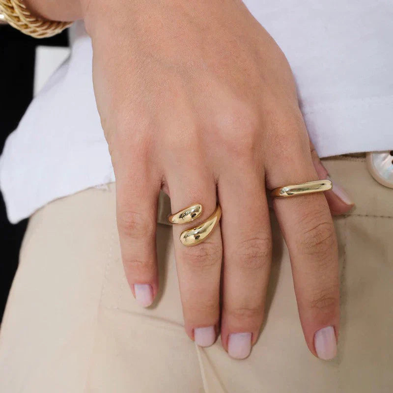 Anel Ajustável Feminino 2 Gotas Lisas – Sofisticação e Versatilidade